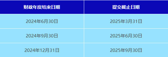 年度申報表 - 財政年度結束后9個月