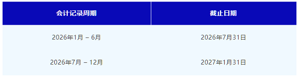1. 半年度會計記錄 (Bi-annual accounting records) – 上半年截止于七月,下半年截止于次年一月